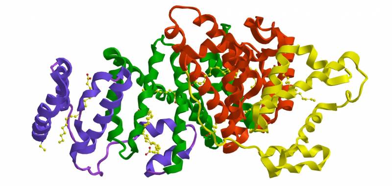 L'albumine est la protéine la plus abondante dans le sang et constitue la principale protéine de transport dans le sang (hormones thyroïdiennes, calcium, médicaments...) Elle est produite au niveau du foie. Le dosage de l'albumine sanguine est prescrit pour dépister une maladie hépatique ou rénale et permet de dépister et de surveiller une dénutrition chronique sévère, une anorexie, ou un état d'alcoolisme chronique. Une albumine basse est en effet révélatrice d'une maladie sévère du foie (cirrhose, etc.), d'une dénutrition (apports insuffisants en protéines) mais également d'une maladie des intestins comme la maladie de Crohn ou de certaines maladies chroniques, le cancer, le diabète, et l’hypothyroïdie notamment. L'albumine est augmentée chez les patients deshydratés.