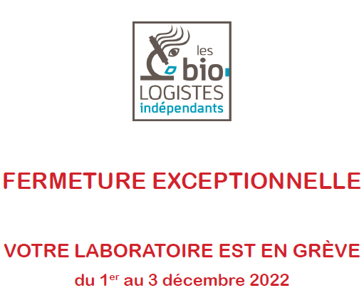 FERMETURE EXCEPTIONNELLE: VOTRE LABORATOIRE EST EN GRÈVE du 1er au 3 décembre 2022